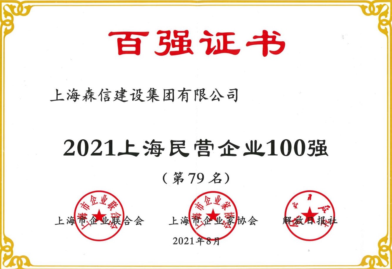 本次評比中,我司獲評“2021上海民營企業(yè)100強(qiáng)(79名)”。至今年,我司已連續(xù)11年位列上海民營企業(yè)100強(qiáng)。