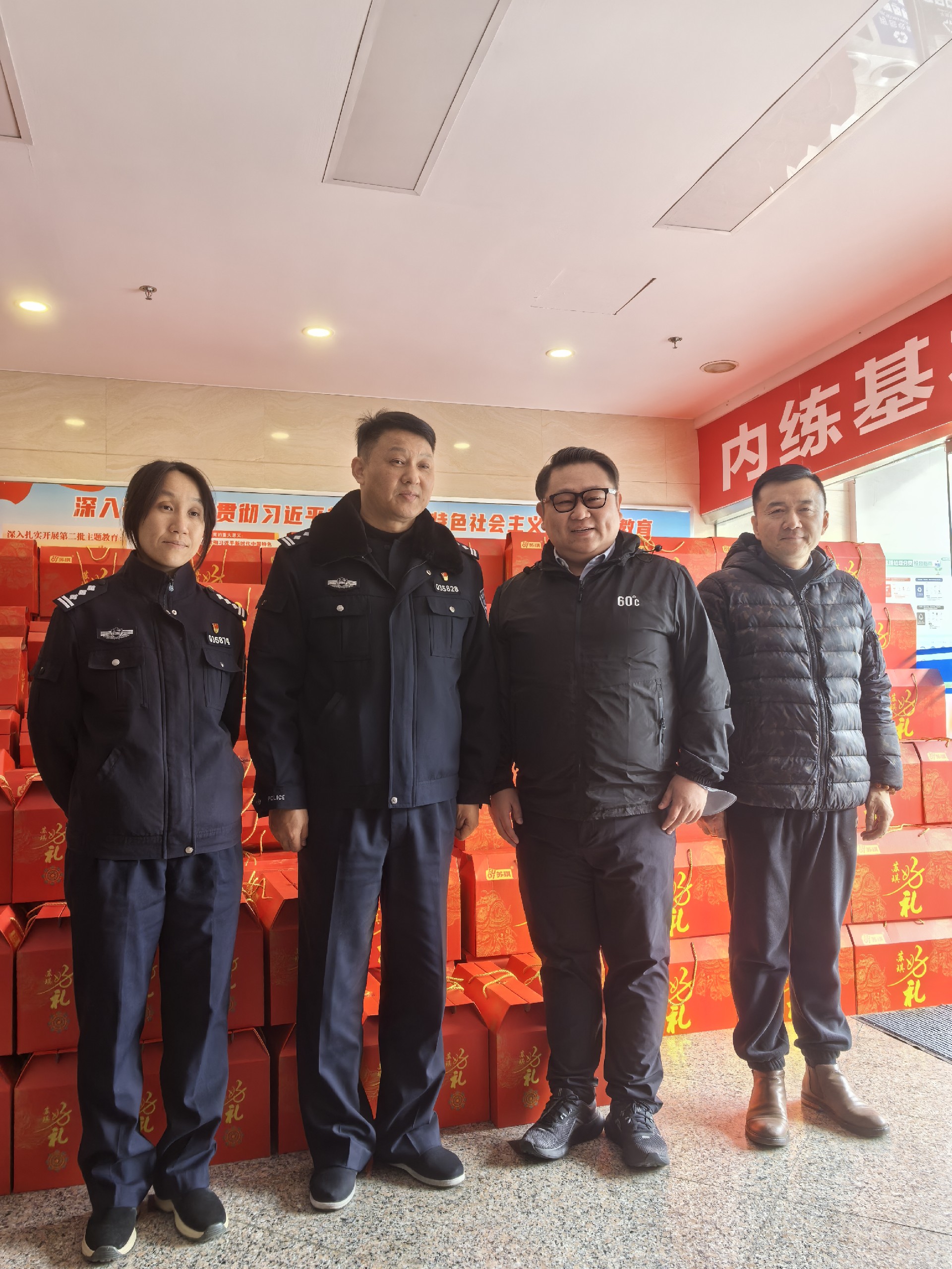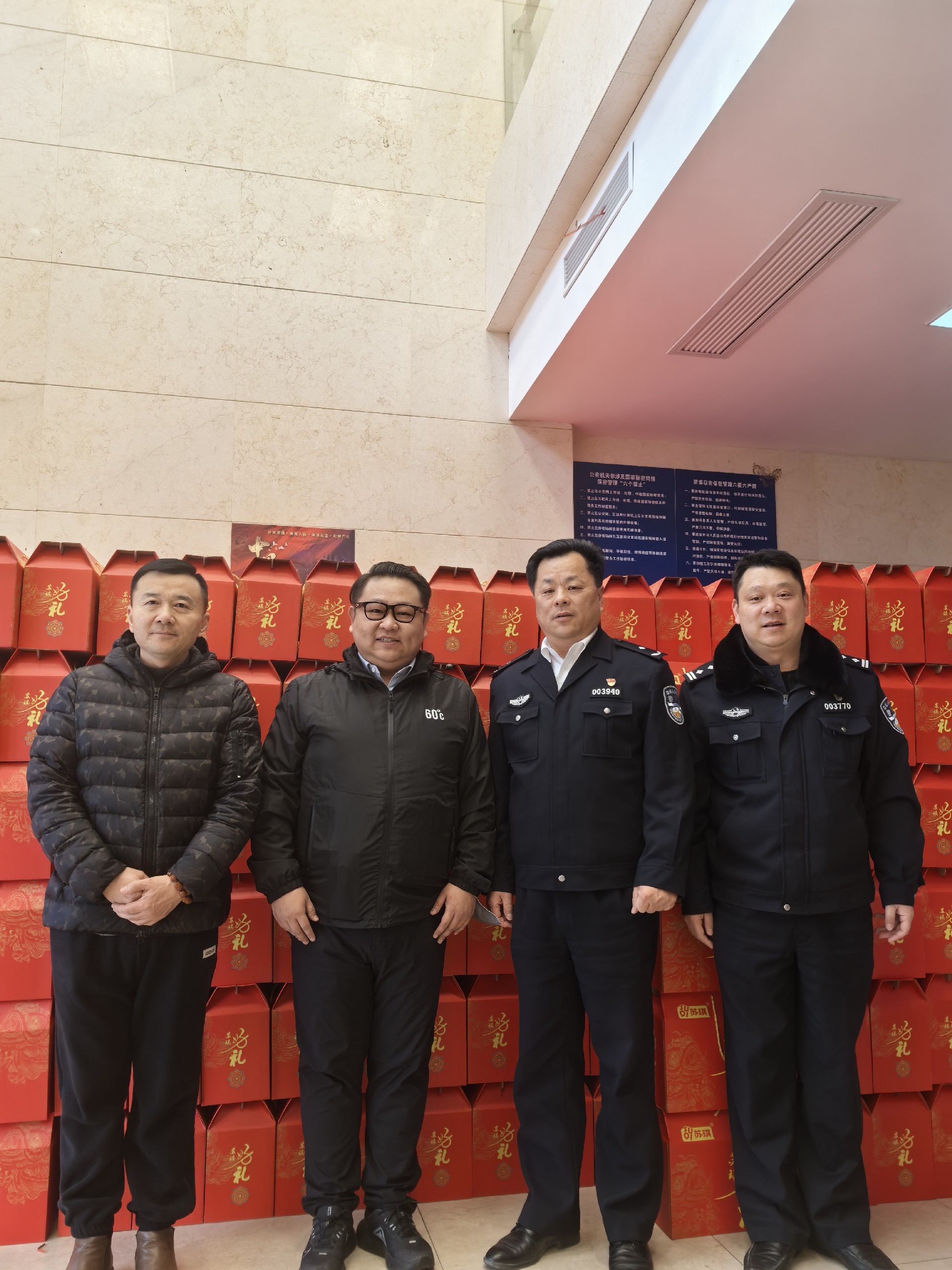 在慰問現(xiàn)場,王銘豪總裁與接待人員熱情握手、親切交談,詳細(xì)了解他們的工作、生活情況,對他們的辛勤付出表示衷心感謝,對他們“舍小家、為大家”,為群眾的平安幸福保駕護(hù)航表示崇高敬意,叮囑他們在寒冷的冬季注意防寒保暖,保重身體。